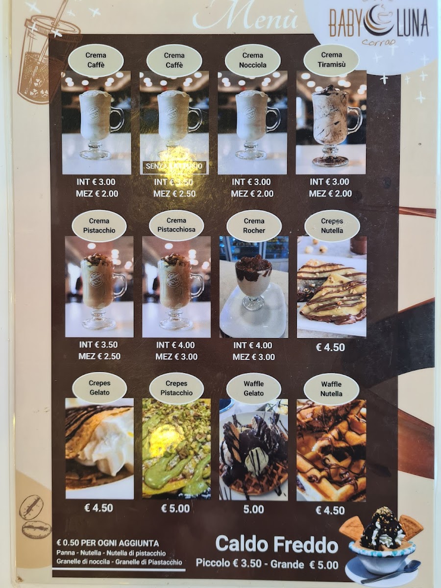 Welcome to CAFFE 'BABY MOON, located on the charming Via Villa Rosina in Trapani, Italy. This delightful café promises an inviting atmosphere perfect for both casual coffee catch-ups and indulgent dessert breaks.